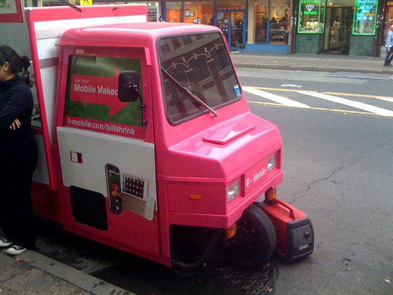 I’m not really sure how to explain this one, but one of our benevolent forum members managed to snap these shots of the T-Mobile “Skooter” zooming NYC promoting the new rate plans. We are all hoping for a serious holiday marketing campaign for T-Mobile and I’m sure this is great for localized promotions but seriously, a Skooter? Then again, put Catherine Zeta Jones behind the wheel of one of these things and I’m signing up for as many phones as she can carry. For the record, putting Neil Patrick Harris in an advertisement for Motoblur is a major win.