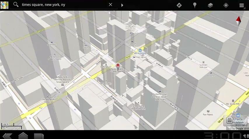 The Google Maps app featured in the first video below shows how quick, smooth, and functional a location search can be using a 3D view of Times Square while also zooming in closer using Street View. Next up is YouTube with a full screen 3D window pane view of a variety of different videos and a demo of the search functionality and some playback. Finally, you have your video chat functionality, “GTalk”, which allows full screen video chat with anyone on your contact list. There don’t appear to be any bells and whistles for video chat beyond what can be seen in the video, apart from whatever that icon on the left is (during chat) – perhaps a camera rotate button?