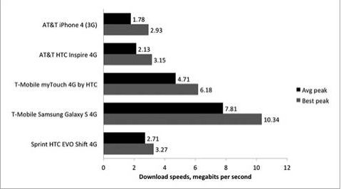 So the results? T-Mobile and the Samsung Galaxy S 4G won, and handily. Not only did the Galaxy S 4G outperform all other competitors, the second place phone was another T-Mobile device, the myTouch4G. The good news for Sprint customers is that the AT&T iPhone was beat out by the Sprint Evo Shift 4G. So you got that going for you.