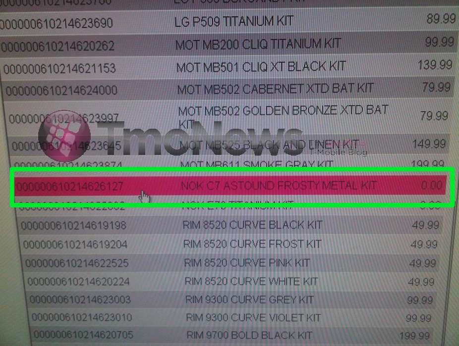 As you can see in the shot above, the C7 is already listed in T-Mobile’s inventory system in a “Frosty Metal” variety. Perhaps it’ll also come in a “Sunny Alloy” version as well. You don’t have to laugh at that.