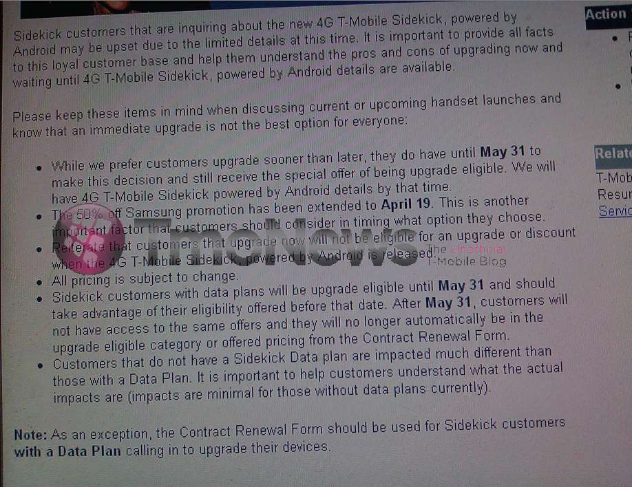 Sidekick customers are currently set as upgrade eligible until May 31st and yet it’s interesting that the timeframe with which customers can upgrade and the timeframe of the Samsung 50% discount offer aren’t running concurrently. I digress to not understand that, one would think that they would run concurrently in order to help properly transition customers affected by this change. Then again, customers receiving the notification letters should make preparations to abandon the Sidekick platform as soon as possible.