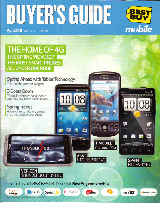 Someone at Best Buy made an “oopsy daisy” by using the wrong picture for their latest mobile magazine with the T-Mobile myTouch 4G on the cover. Except it’s not the myTouch 4G, it’s the original myTouch and oh how different those two devices are. I suppose in any event anyone coming into a Best Buy store looking for that device would be pleasantly surprised to see its replacement.