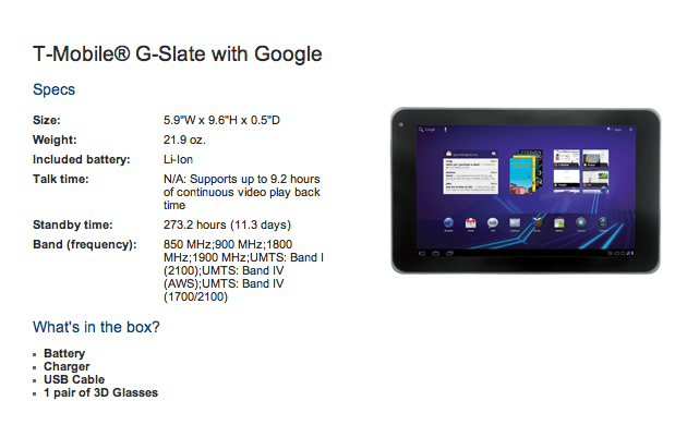 Well, it seems that T-Mobile has put up a page on the G-Slate, and is doing us a favor by including a free pair of 3D glasses to watch 3D content on the display with!