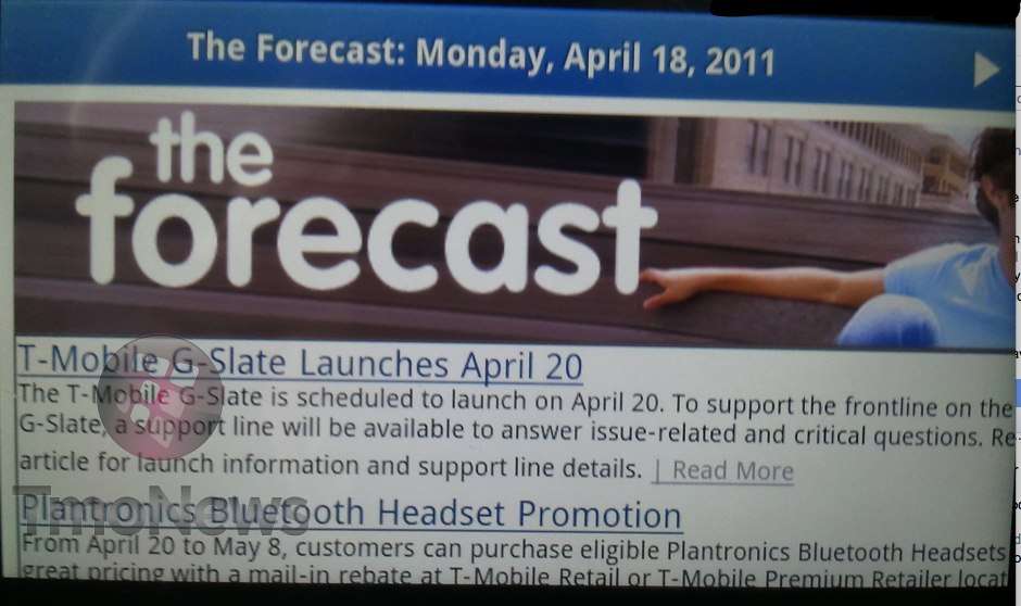 After what seems like an unnecessarily long wait T-Mobile has finally gone and announced the arrival of the T-Mobile G-Slate for April 20th. While we’ve speculated this for quite some time as all signs pointed to a release on that day for the last few weeks it’s nice to finally see something official. Of course by official we mean this screen shot sent our way courtesy of some ninja skills.