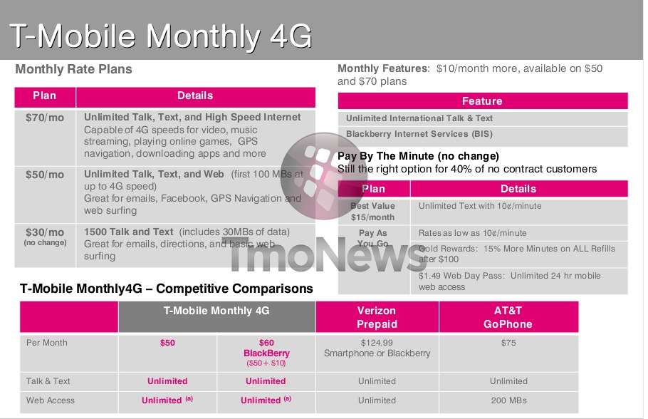 With live T-Mobile website pages already available for the “reintroduction” of T-Mobile’s prepaid offering there was little room for doubt they were actually happening. However, if you’ve shrugged aside the official T-Mobile website and want some ninja evidence we’re delivering. The details line up with the information we learned earlier this month with the $70 plan offering unlimited talk, text and unlimited data. The new $50 plan will offer unlimited talk, text and 100MB of data and once the 100MB limit is reach the customer will be throttled. The current $50 plan offers 100MB of data but data is cut off at the 100MB point.
