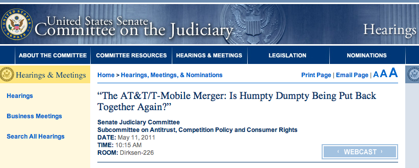On Wednesday morning at 10:15am EST time executives from AT&T and T-Mobile will testify in front of the Senate Judiciary Committee in the hopes of justifying the acquisition of T-Mobile by AT&T. Tuesday afternoon saw a conference call with some of tomorrows witnesses who will appear before the Senate regarding the ramifications of such a deal. What are some of the main points you can expect to hear tomorrow? Thanks a Forbes Magazine recap of the call we have a pretty good idea:
