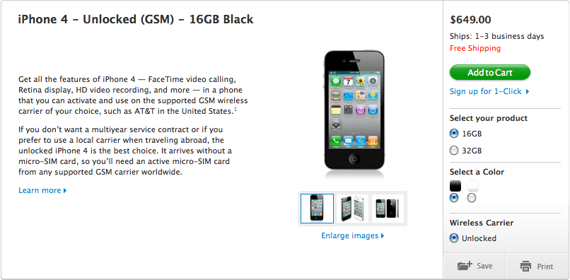Early this morning Apple announced the availability of the iPhone 4 Unlocked edition. It’s a big development from yesterday when this was all just rumor and many never expected Apple to actually consider releasing the iPhone 4 unlocked in the United States. Well it’s available but it’s not coming cheap with the 16GB version going for $649.00 and the 32GB edition going for $749.00. You have your choice between black or white and it’s completely unlocked. For those of us in T-Mobile land this doesn’t change the fact that the iPhone 4 will give us anything other than EDGE bands as the phone only comes with AT&T compatible 3G frequencies. Still, if you’re like me the data speeds are a trade off for using iPhone on the Magenta network. It’s not always the most acceptable tradeoff but it’s the price you pay for unlocked freedom.