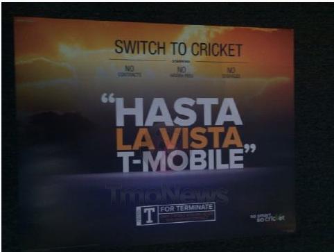 Oh Cricket Wireless, you so funny playing off the Terminator movie line. So inventive of you. This ad found by one of our astute @TmoNews Twitter followers comes on the heels of a large number of you seeing a similar message coming across in a new Cricket Wireless television commercial proclaiming T-Mobile dead. I’ve tried to locate the commercial online but have been unable to do so and there is no link to a marketing page on mycricket.com. Is it a little early for Cricket to be attacking T-Mobile? What say you?