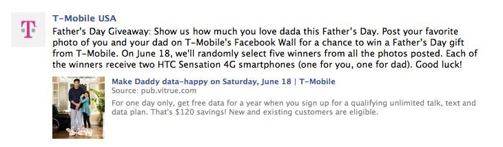Update: T-Mobile just added an additional Tweet for those who don’t have a pic with dad. Posting a pic with your child or someone you looked up to as a kid are both perfectly acceptable. Classy move by T-Mobile since not everyone can post the photo with dad. Bravo for allowing everyone to enter.