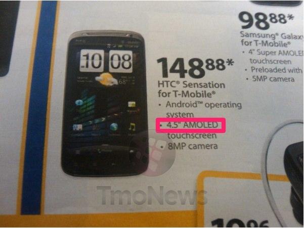 While Walmart has already been selling the HTC Sensation 4G for a few days now, their most recent Sunday circular shows the official pricing as $148.88. Of course they are also claiming the Sensation 4G has a 4.5″ screen so someone at Walmart didn’t do their homework. That’s still not as bad as T-Mobile’s website claiming the phone is capable of 42Mbps HSPA+ 4G speeds though so we’ll give Walmart a pass on this one. T-Mobile has since updated the page by the way to reflect the actual speeds.