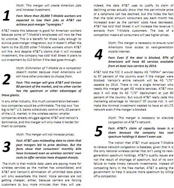Five Myths About The T-Mobile/AT&T Takeover Courtesy Consumer Advocate Free Press