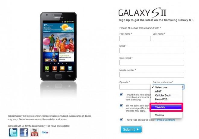 Galaxy S 2 Sign Up Page Includes T-Mobile?!