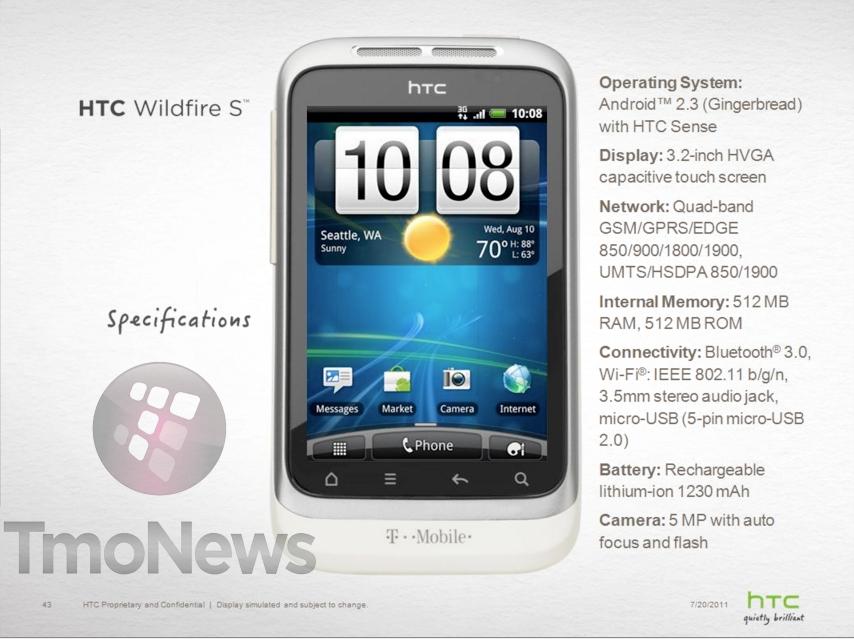 Did we call it or did we call it? The HTC Marvel which has been rumored to come to T-Mobile for sometime now was just confirmed to be called the Wildfire S upon arrival. Well now it’s super duper confirmed via this leaked spec sheet we just got our hands on which gives a look at what your money will buy you as soon as this phone drops on T-Mobile. You’ll receive Android 2.3 Gingerbread (right out of the box, take notes LG), a 3.2″ HVGA touchscreen and a 5 megapixel camera. Curiously enough the network listing shows the UMTS as being 850/1900 instead of T-Mobile’s AWS 1700/2100 so we’ll just chalk that up to a website typo and move on. At least we hope it’s a website typo.