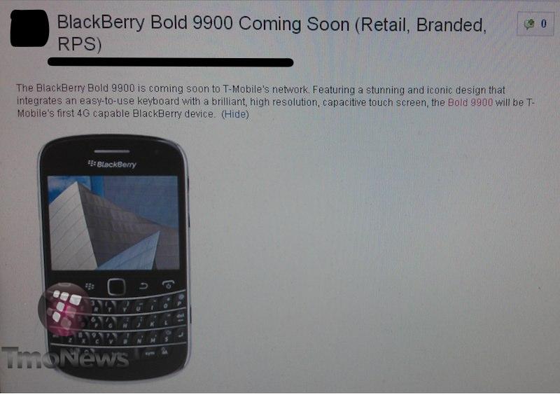 The Blackberry Bold 9900 is ready to make its arrival on T-Mobile’s network sometime in the near future as T-Mobile has posted internal docs previewing the device as “coming soon.” Of course all signs point toward August 31st as the arrival date. That’s “soon” right?