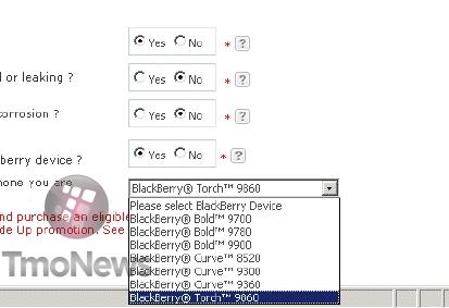 Rumors of the Blackberry Torch 9860 arriving on T-Mobile have been going on behind the scenes for some time. The passing of the Blackberry Torch 9860 with AWS bands through the FCC at the end of July pushed the rumor mill even further into the camp that this could very well arrive on T-Mobile. Now some internal screenshots offering up trade-in information regarding Blackberry devices T-Mobile carries currently or will carry now have hit our inbox showing the Blackberry Torch 9860 as appearing in the system. Also noticeable is the appearance of the Blackberry Curve 9360, another Blackberry we know is T-Mobile bound later this month indicating that future Blackberry devices could very much make an appearance on this trade-in document.