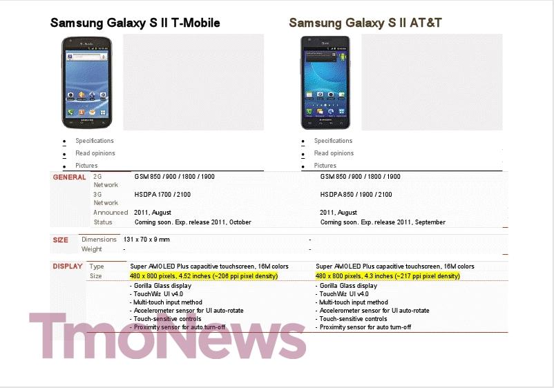 Samsung Galaxy S II AT&T Vs T-Mobile Comparison