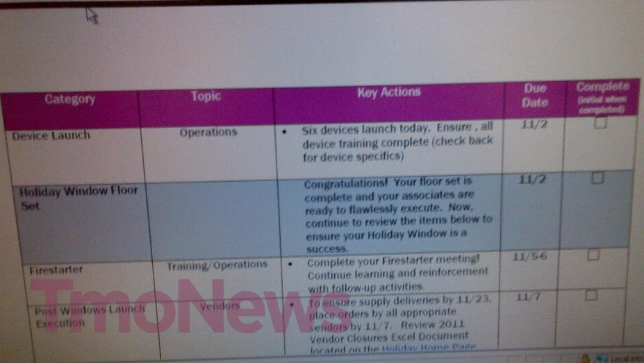 Looks like T-Mobile is going to have one very nice November with a total of six planned launches for November 2nd. Unfortunately we have no idea as to which devices these will be and as you’ll see in two follow up posts we’ve got the rollout dates for the Galaxy Tab 10.1″ covered along with the upcoming Sonic 4G Mobile Hotspot. So you can take those two out of the realm of possibles.