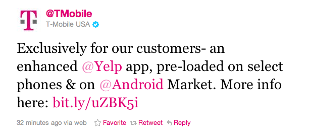 This one almost passed us by — as of November 2nd a special version of the Yelp App for Android specific for T-Mobile customers is now pre-loaded onto the Samsung Exhibit II 4G, T-Mobile myTouch and T-Mobile myTouch Q smartphones. Existing T-Mobile customers with Android smartphones are able to download the specialized free app straight from the Android Market.