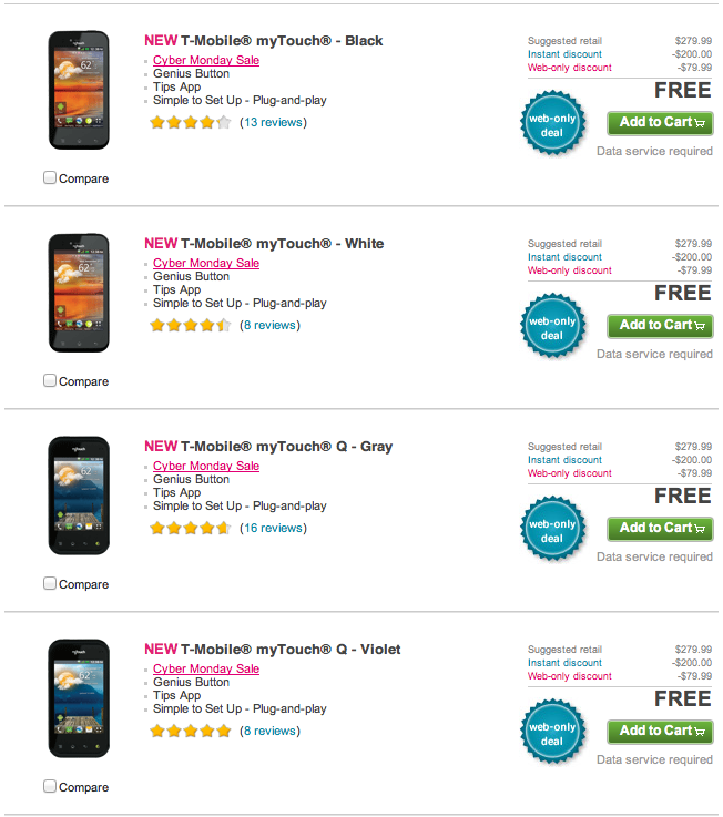 T-Mobile Posts myTouch By LG Cyber Monday Sale On T-Mobile.com