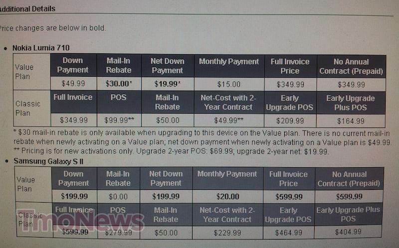 A quick little note on some recent price changes that took place yesterday involving the Samsung Galaxy S II and Nokia Lumia 710. With regards to the Nokia Lumia 710, the Value Plan pricing has changed a little allowing for a $30 mail-in rebate bringing your initial net down payment to just $19.99.