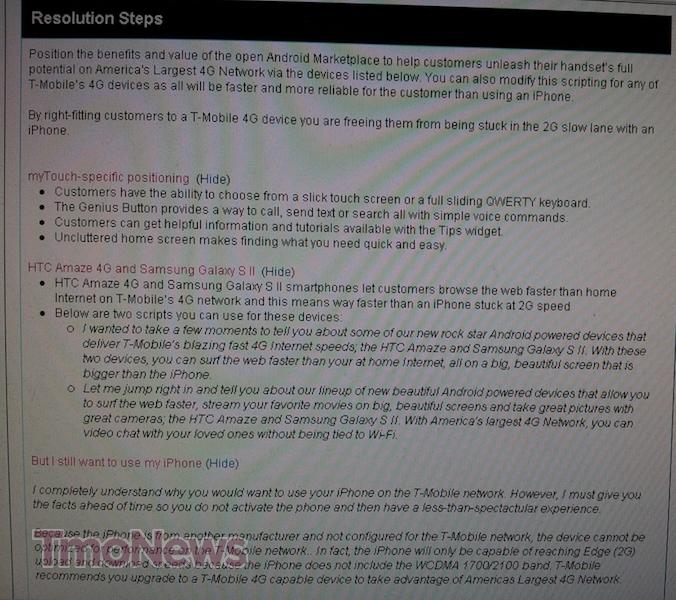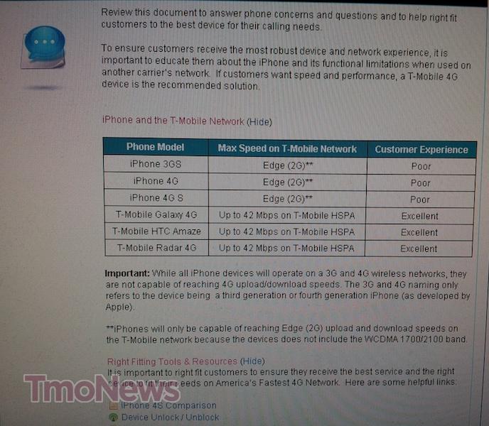 All that aside, it’s an interesting look at how T-Mobile plans to “educate” customers on the advantage of their 4G Android smartphones against the EDGE-only capability of the iPhone. I’m a little disappointed that T-Mobile is using documents like this without mentioning they have one million plus iPhone subscribers on the network who clearly aren’t concerned about the EDGE-only option.