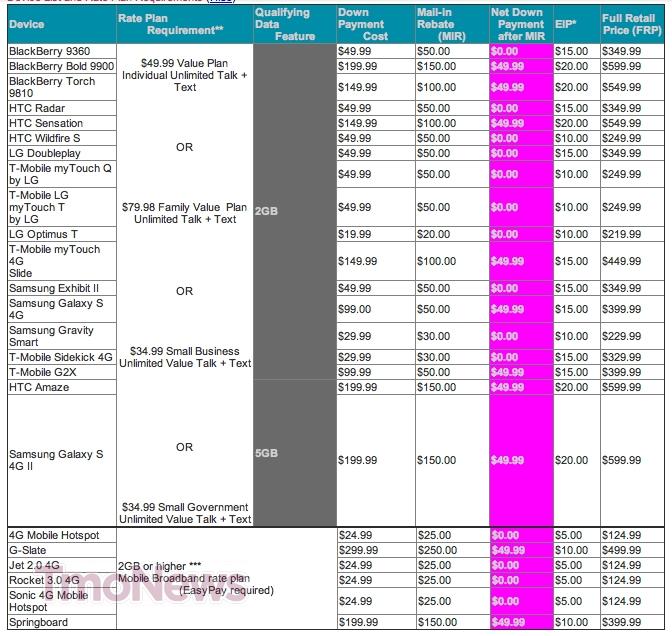 T-Mobile’s “New Year, New Phone Sale” is ready to kick off this weekend and it’s bringing the Value Plan goodness. So what’s the offer? “All smartphones and select Mobile BroadBand devices in T-Mobile stores will be available with a new down payment of $49.99 or less, when purchased with a qualifying new Unlimited Value Plan.” In other words, this sale sounds exactly like the previous sales that have been geared toward the Value Plan side of T-Mobile’s dual-rate plan offer. This appears to be the “winter event” we were expecting after T-Mobile’s winter marketing focus sheet leaked at the end of 2011.