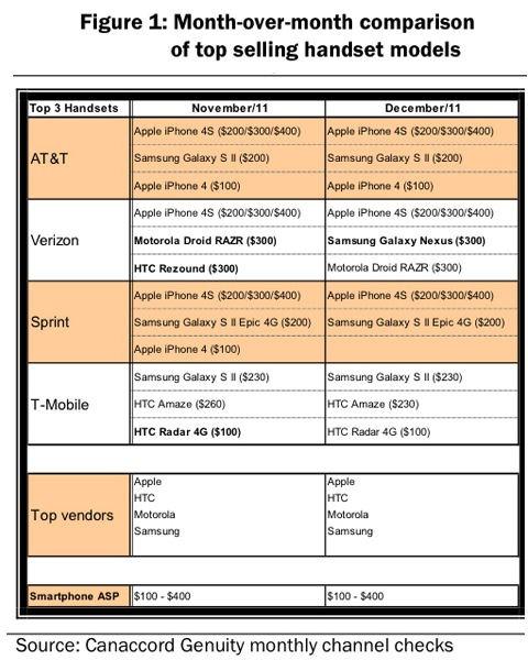 The same pattern continued for two more months until the Galaxy S II and HTC Amaze 4G were introduced in October, relegating the myTouch 4G Slide to third place and then we hit November where the HTC Radar 4G slides into third place.