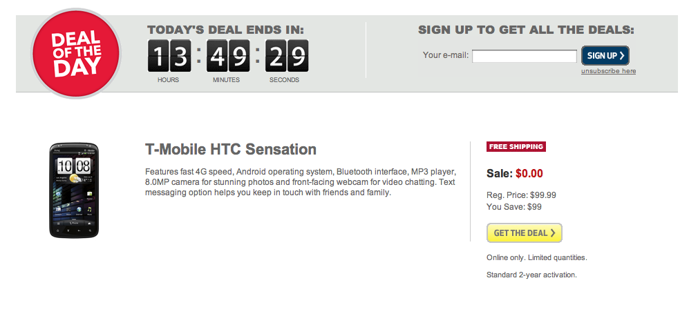 Happy Super Bowl Sunday everyone and let’s give a big thank you to Best Buy for offering up a T-Mobile Sensation 4G as their Sunday deal of the day. The Sensation 4G is free with a new, two-year contract and just $99.99 for qualifying upgrades on a two-year contract. The deal ends in 13 hours, 47 minutes and 11…10….9 seconds so take advantage now!