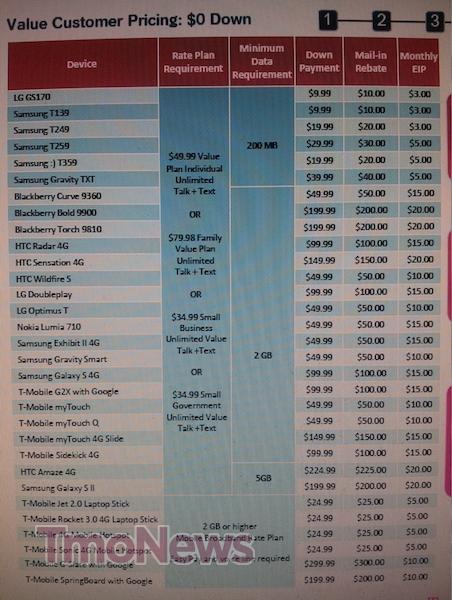 With the news that T-Mobile’s Saturday “Cupid’s Arrow Hits Mark” sale is officially live, we’ve received two very useful price guides for both Classic Plan and Value plan smartphone/tablet pricing. If you’re looking at a phone purchase for Saturday’s sale but aren’t sure how much you’ll be shelling out-of-pocket, these charts are for you. Mail-in rebates will range anywhere from $10.00 to $400.00 depending on the smartphone or tablet choice with Value Plan Equipment Installment Plans ranging from $3.00 to $20.00 per month. Qualifying upgrade customers will need to have 22+ plus months tenure to qualify for Classic Plan pricing. Qualifying plans include Individual Plans, Family Plans, Add-a-lines, Mobile Broadband and Small Business lines.