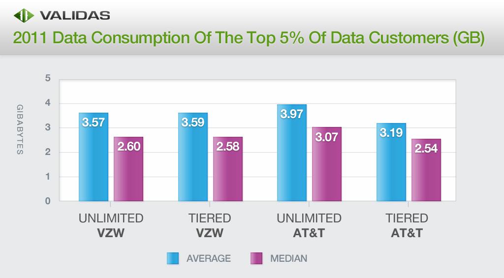 The reality is that AT&T’s unlimited data plan users average only 3.97GB’s of data per month, hardly the kind of numbers that choke a network. Moreover, there is also little difference between 3.97GB’s and 3.19GB’s, the average data use among AT&T’s top 5% of tiered-plan users.