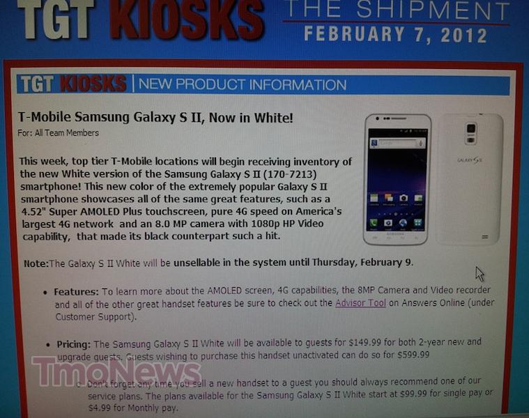 Looking to get yourself a White Samsung Galaxy S II from a brick and mortar location rather than T-Mobile’s website? Well now you can, or at least you can in two days from your local Target Store, which will stock the White Galaxy S II beginning Thursday, February 9th. Target will make the Galaxy S II available to both new and existing customers for $149.99 on a two-year contract. Anyone looking to purchase the phone outright can expect to pay $599.99 for it, the same price as T-Mobile direct. The White Galaxy S II is exactly the same version as its black counterpart, except it’s — white. That all we’ve got, pick up the White Galaxy S II from Target beginning this Thursday.