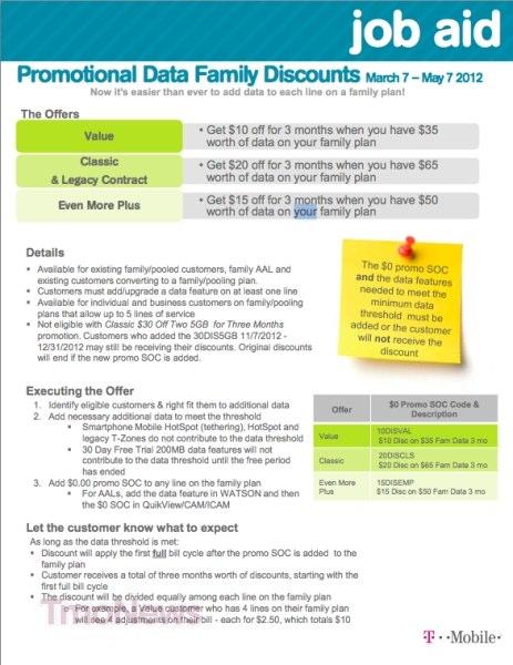 T-Mobile’s new Promotional Data Family Discounts “…will be available to help family plan customers lower the cost of adding data to more lines. Family plan customers add data more often to their first two primary lines than add-a-lines due to the cost of data for multiple lines.”
