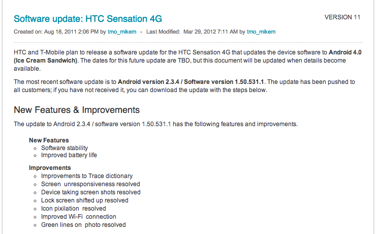 T-Mobile Updates Support Forum Posts For HTC Amaze 4G, HTC Sensation 4G