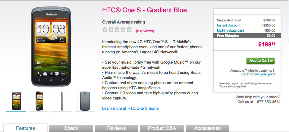 The HTC One S is on sale at T-Mobile for $199.99 after a $50 mail-in rebate making the Magenta Deal days offer an incredible opportunity to walk away spending 50% less than you were intending.