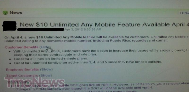 A quick reminder for all you Unlimited Any Mobile fans out there as April 4th marks the beginning of T-Mobile’s “Unlimited Any Mobile” offer. “Beginning April 4th, T-Mobile will offer Unlimited Any Mobile, a $10 per month subscriber-level feature that includes unlimited calling to any domestic mobile number, including Puerto Rico, regardless of carrier.”