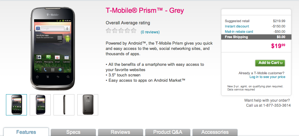 T-Mobile Prism Now Available Directly Through T-Mobile Online, Company Owned Retail Stores