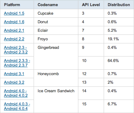 Google’s just released their newest set of Android OS distribution stats and we’re happy to see a small bit of growth for Ice Cream Sandwich is it now powers up to 7.1% of all Android devices. That’s an increase of 2.2% from May, which saw just 4.9% of all Android devices running on Ice Cream Sandwich. It’s likely that the release of HTC’s One X, S and V smartphones, plus a few carrier updates are responsible for the jump in May. Making up the lions share of Android devices is of course Gingerbread, now making up 65% of all Android devices, up 0.6% from May. Froyo, surprise, surprise makes up 19.1% of all Android devices leaving Cupcake, Donut and Eclair with a combined 6.1%. Honeycomb, the tablet-only OS saw its marketshare drop to 2.7%, down from 3.5% in May.