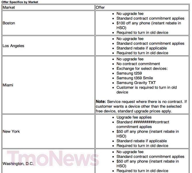 In each market, five thousand customers will be selected to receive a mailer notifying them of the offer and each 2G device on the account is eligible for the offer. Pending the results of this pilot test, a full launch may come in the Fall as T-Mobile works to move as many customers as possible off their 2G network to free up space for HSPA+ refarming rollout.