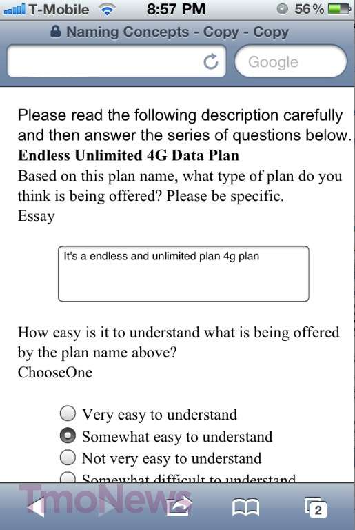 We’ve heard whispers of T-Mobile considering the idea of bringing back something resembling an “unlimited” 4G plan, but haven’t had any concrete proof that idea has made it out of the conference room so to speak, until now. Granted, this image of a survey going around to random T-Mobile customers isn’t a definitive sign it will come, but it’s the first “evidence we’ve seen that T-Mobile has moved beyond the “thinking about it” phase.