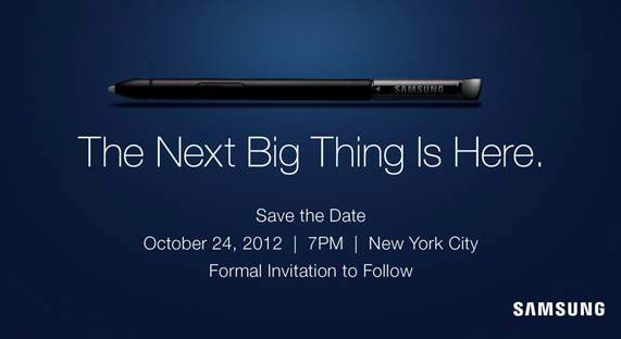 Samsung just sent out a “Save the Date” for October 24th, teasing the “Next Big Thing” with an S Pen front and center. Without any additional details, we’re left to guess what this could be, but we really can’t imagine it being anything other than the Galaxy Note II. Our money is on a US focused Galaxy Note II special event launch and hopefully we’ll get some concrete dates and pricing details this evening as well.
