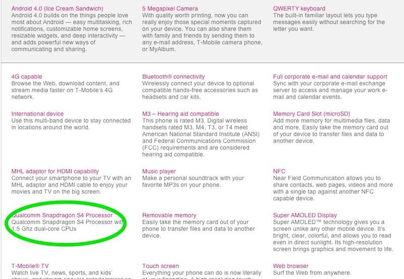 I’m going to make this short and sweet and tell you, in a reversal of our beliefs I’m overjoyed to post, T-Mobile has confirmed that the Galaxy S Relay 4G does indeed have a Snapdragon S4 processor. Our original intel, before the phone was officially announced had pointed in that direction, and then following the official announcement had us considering that Samsung would release the phone with a Snapdragon S3. Well, we’re no longer unsure as T-Mobile has triple checked and confirmed that inside the Relay 4G, sits a Snapdragon S4 processor.