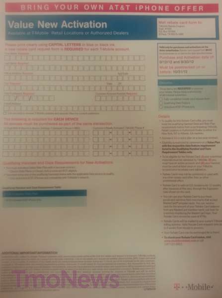As T-Mobile’s campaign to entice to bring their unlocked iPhone’s from AT&T over to Magenta kicks off tomorrow, at least some retail locations are offering an extra incentive. Right now we can only confirm this offer for the Northeast and Southeast regions of the country as they take part in a pilot to promote T-Mobile’s network with unlimited data allowing customers who activate a Value Plan with their unlocked AT&T iPhone to receive a $100 mail-in rebate.