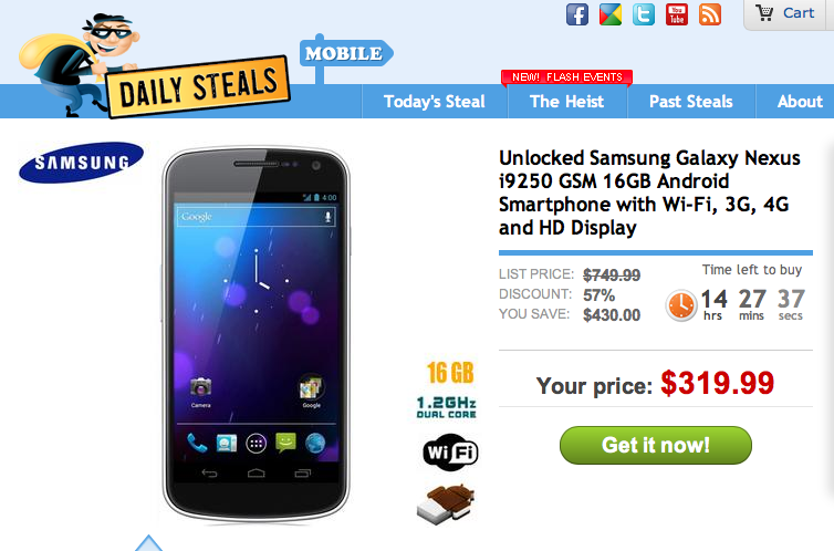 There’s obviously a lot of anticipation surrounding the next-generation Nexus smartphone announcement, but that doesn’t mean we can just ignore the existing Galaxy Nexus. With that in mind, the folks at Daily Steals present a special one-day only sale for the Samsung Galaxy Nexus i9250, which is ready out of the box for T-Mobile’s 4G network.