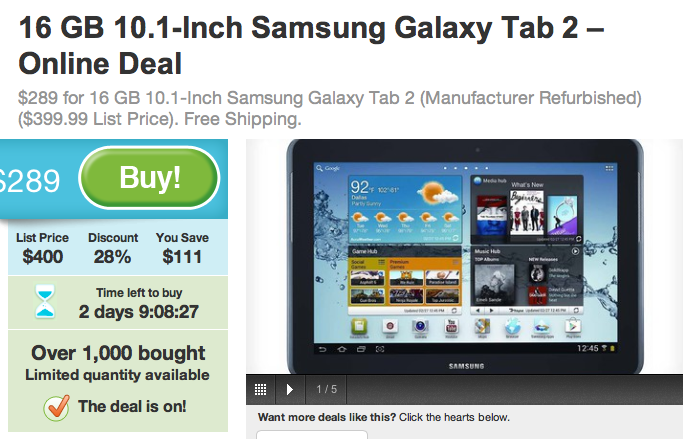 The next deal is a refurb Galaxy Tab 2 10.1″ tablet, which is coincidentally a tablet T-Mobile will soon stock on their own shelves running their HSPA+ network. If you’re looking for a better deal than a carrier will offer, the $289 price tag for a refurbished unit is a steal. The Galaxy Tab 2 10.1″ features: