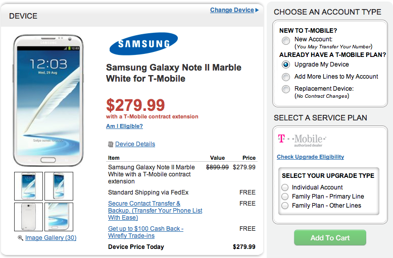 Looking to save on the Galaxy Note II? Good, because WireFly wants to help you out as their worst kept secret Wirefly Friends website is offering the Galaxy Note II for $249.99. In fact, that price is cheaper than the actual WireFly website which is selling the Note II for $279.99. The pricing is good for both existing customers and upgrading customers, but only for Classic and Legacy plans. WireFly, like most third-party retailers, doesn’t offer Value Plan purchases.