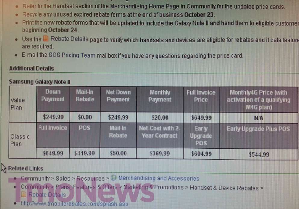 T-Mobile Galaxy Note II Pricing Sneaks A Peek, Looks To Be A Go For Tomorrow