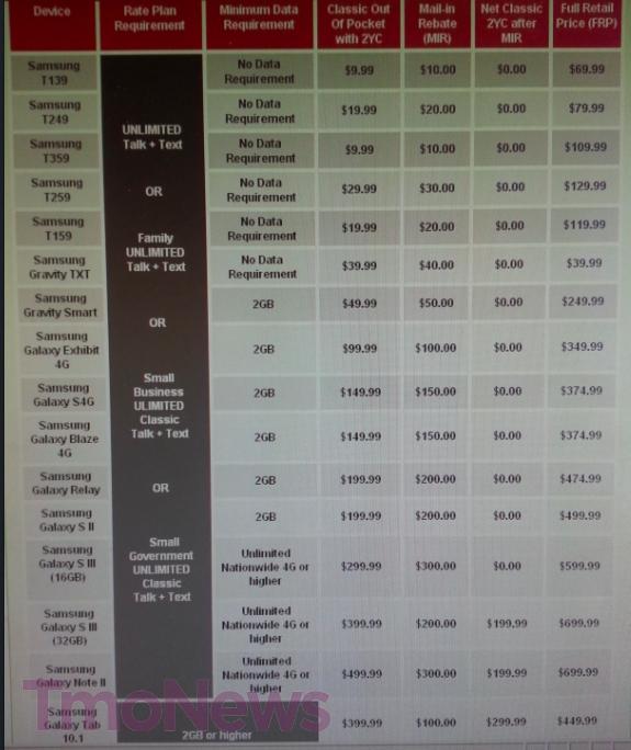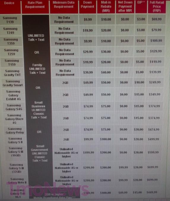 The rest of the images show a complete pricing breakdown for all the Samsung smartphones and tablets on sale this weekend. Classic Plans are on top, Value Plan pricing is below.