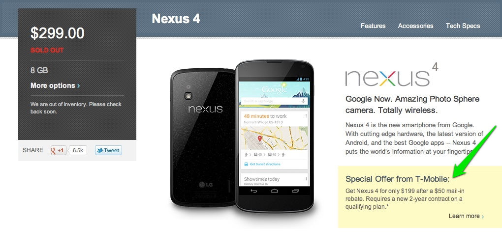 The lack of inventory for both parties definitely has us wondering why Google is directing traffic to T-Mobile, instead of fulfilling future orders through their own channels? It’s a question we’d like an answer to, but likely won’t get. Either way, we’re hopeful that at either the Play Store or T-Mobile will have the Nexus 4 back in-stock soon.