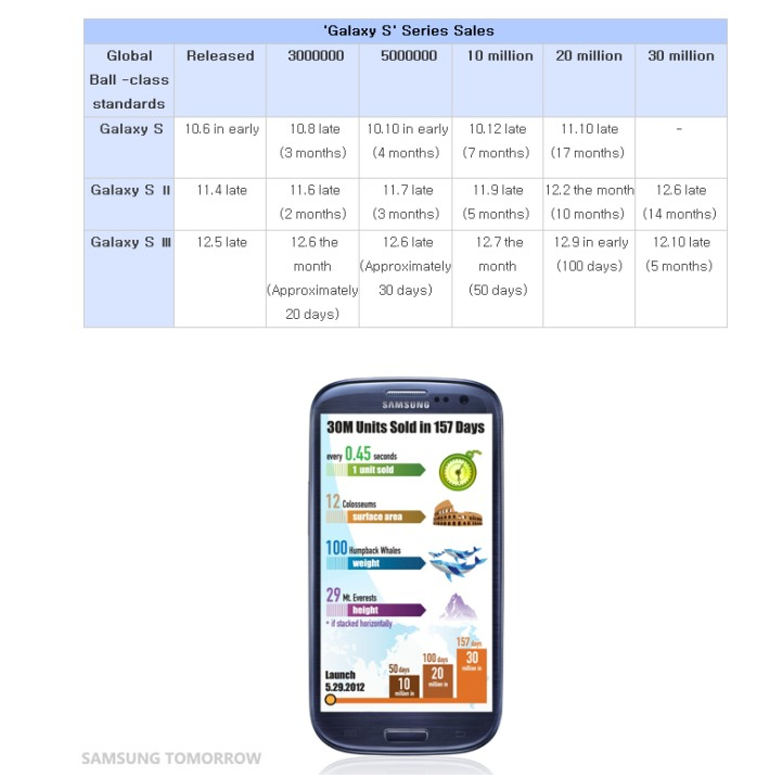 The Samsung GALAXY S III achieves 30 million sales in five months
