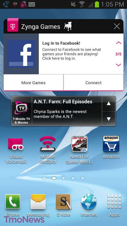 As a short addendum to the software section, it’s worth noting the T-Mobile specific inclusions on the Note II. The usual allotment of apps are available: Mobile HotSpot, My Account, Name ID, T-Mobile TV, as well as a few pages and widgets. Along with Samsung’s own dedicated widgets, T-Mobile has dedicated widgets for T-Mobile TV and Zynga Games. Along with that is Need for Speed, as mentioned above, which is provided by T-Mobile along with support for the MOGA gaming system which will be sold in stores beginning this month.
